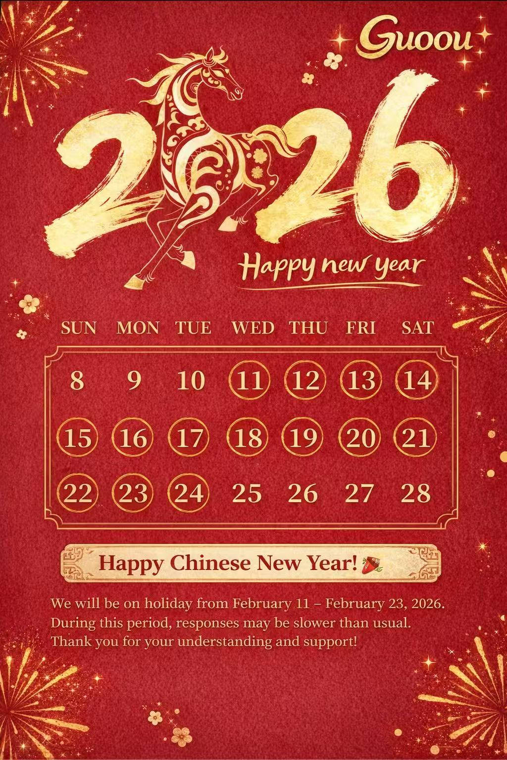 According to our company schedule, our Spring Festival holiday will be from February 11 to February 23, 2026. During this time, responses to